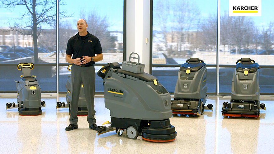 This easy to use B40 battery operated floor scrubber dryer is ideal to hire; it makes light work when cleaning large areas and is able to cover 1100m2 per hour.
