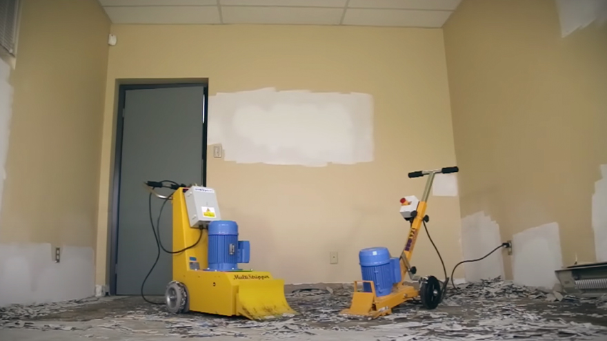 - The removal of mortar and plaster droppings from concrete floors in a new build