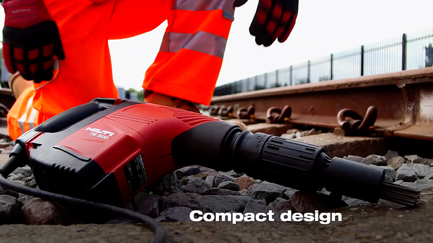 The Hilti TE300-AVR breaker is the lightest of all the Hilti breakers for hire and allows effortless use in all working directions. With its Active Vibration Reduction (AVR) this breaker is less tiring to use, therefore increasing daily activity.